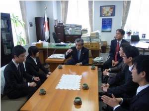 当日は、伊藤副校長をはじめ聴覚支援学校の2人の教員とともに、大きな絵画を局長室に運び贈呈式を行った後、卒業後の進路や学校で苦労したことなどについて、布村局長と山下和茂審議官と懇談した。文部科学省の庁舎に入った瞬間から緊張していた2人の生徒は、布村局長の優しい問いかけに徐々に緊張も和らぎ、最後に、「卒業してからも頑張ります」と力強く宣言して局長室を離れた。