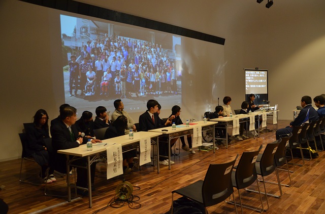 後半では、「いろいろな人とともに生きるということ~共同生活体験とスポーツ交流を通して~」をテーマにシンポジウムを開催しました。附属学校の児童生徒(附属小学校、附属駒場高等学校、附属聴覚特別支援学校、附属大塚特別支援学校、附属桐が丘特別支援学校)がシンポジストとして、「黒姫高原共同生活体験から得られたもの」と午前の部で行われた「スポーツ交流の感想」を発表し、会場の参加者からも感想や意見が寄せられました。