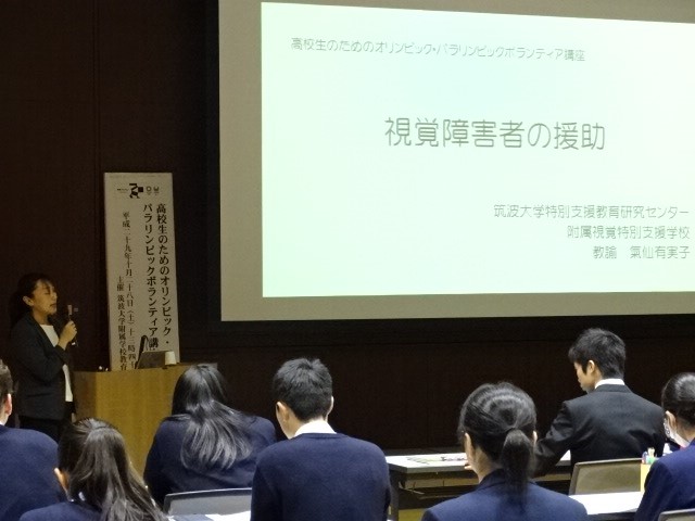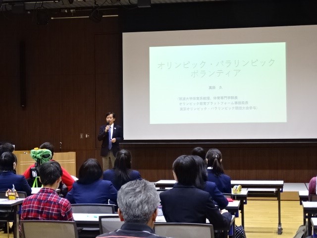 最初に、本学体育専門学群長真田久教授の「オリンピック・パラリンピックとボランティア」の講義があり、オリンピック、パラリンピック、ボランティアの基礎・基本について、生徒は具体的に理解することができました。