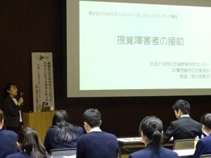 ボランティア講座の講義・実習・体験を通して、オリンピックやパラリンピックを理解し、ボランティアの精神や、知識、技術、態度を学び、オリンピック・パラリンピックとボランティアについて考えを深める機会となりました。「一人ひとりに合ったおもてなしができるように、日頃から相手のことを考えて行動したい」「今後、視覚障害者のサポートを積極的に行いたい」等のアンケートに、そのことが述べられていました。
