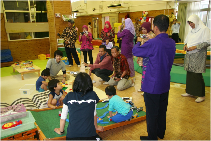 視察団の一行は、授業や校内施設を興味深く視察し、幼児・児童と楽しく触れ合う場面もあり、同校の幼児・児童にとっても外国人と触れ合う貴重な体験となり、国際交流の良い機会ともなった。