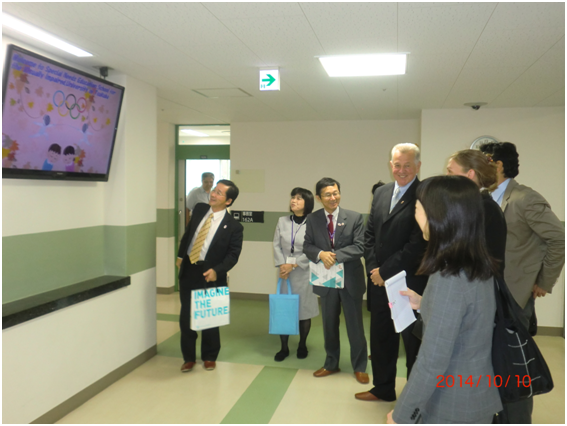 去る10月8日、日本政府のスポーツを通じた国際貢献策「Sport for Tomorrow」の一環として外務省の招聘により,シュミット・パール国際オリンピック委員会(IOC)委員(前ハンガリー大統領)が訪日、10日午前に筑波大学東京キャンパス国際スポーツアカデミーセミナーでの授業を行い、永田恭介学長との昼食会後、石隈利紀教育長・真田久体育学群長らと筑波大学附属視覚特別支援学校を訪問しました。