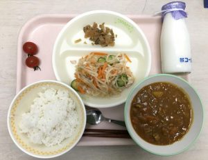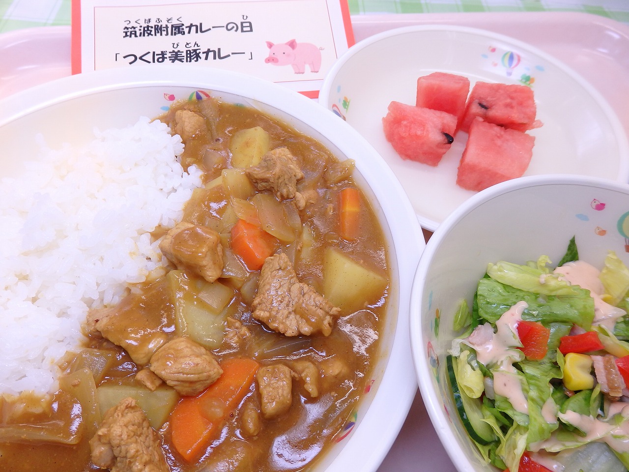 食育月間最終日である6月30日、昨年に続き「筑波附属カレーの日」として、附属小学校、附属視覚特別支援学校、附属大塚特別支援学校、附属桐が丘特別支援学校の給食で、一斉にカレーが出されました。