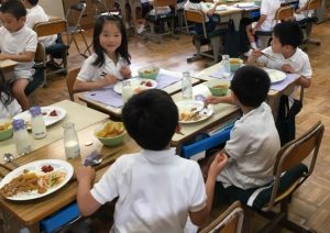 各学校では、栄養教諭からつくば美豚についての話を聞いたり、いつものカレーとの違いを話し合ったり、他の附属学校の給食の様子を想像したりしながら、楽しい給食時間を過ごしました。