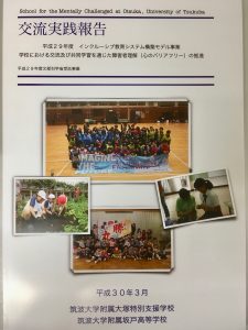 本校では、文部科学省の「学校における交流及び共同学習を通じた障害者理解(心のバリアフリー)の推進事業」を平成27年度から3年連続で受託し、スポーツ・身体的活動(アダプテッド・スポーツ)や芸術・文化的な活動を通した様々な交流に取り組んできました。先月、1年間の実践をまとめ、全国の関係機関に報告しました。平成30年度も引き続き本事業の申請が採択され、共生社会の実現に向けた「インクルーシブ教育システム」の構築を目指していきます。今年度は、これまでの成果から、障害理解と知的障害のある子どもたちの育ちを評価する方法について検討していきます。