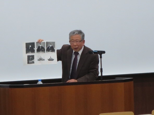 教員研修会は、学内外の教職員及び教育機関関係者に対し研修の一環として、幅広い知見を得ることを目的に開催しており、今年度は東京大学名誉教授 黒田日出男先生による「神護寺の伝源頼朝像と善光寺の源頼朝像」と題した講演がありました。黒田先生ご自身の経歴を伺いながら、専門以外の方でも分かりやすく興味深いお話を頂きました。
