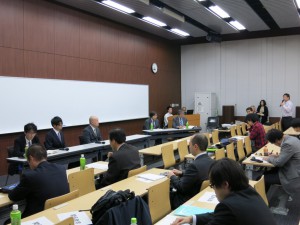 第2部シンポジウムでは、宮本俊和施設長がコーディネーターを務め、被災した宮城、福島、岩手、茨城の理療科教員8名が加わり、盲学校の防災教育について、活発な意見交換がおこなわれた。また、盲学校理療科生徒による仮設住宅居住者への鍼灸マッサージボランティアについて紹介があり、健康維持や疾病予防の観点から定期的な治療を希望する居住者が約70%近くいることが報告された。