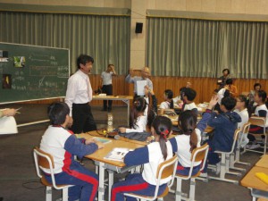 「日韓授業交流授業技術研修会」は、海外交流の一環として開始し、本年で6回目を迎える。日韓授業交流授業技術研修会は、当校教員が韓国の小学校を訪れ、現地の教員の授業を参観したり、現地の児童に授業を実施したりした後、両国の教員が意見交換を行うものである。当初は算数や理科などを中心に行ってきたが、昨年度より、新たに国語や道徳においても交流授業を行っている。継続的な授業交流を通じ、相互に学び合いながら授業向上を目指していきたい。