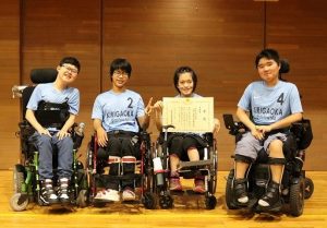 桐が丘特別支援学校は、高等部生徒2名、中学部生徒2名、計4名のチーム構成で臨み、3戦全勝でトーナメントを勝ち上がって、決勝で会場校である都立府中けやきの森学園と対戦しました。