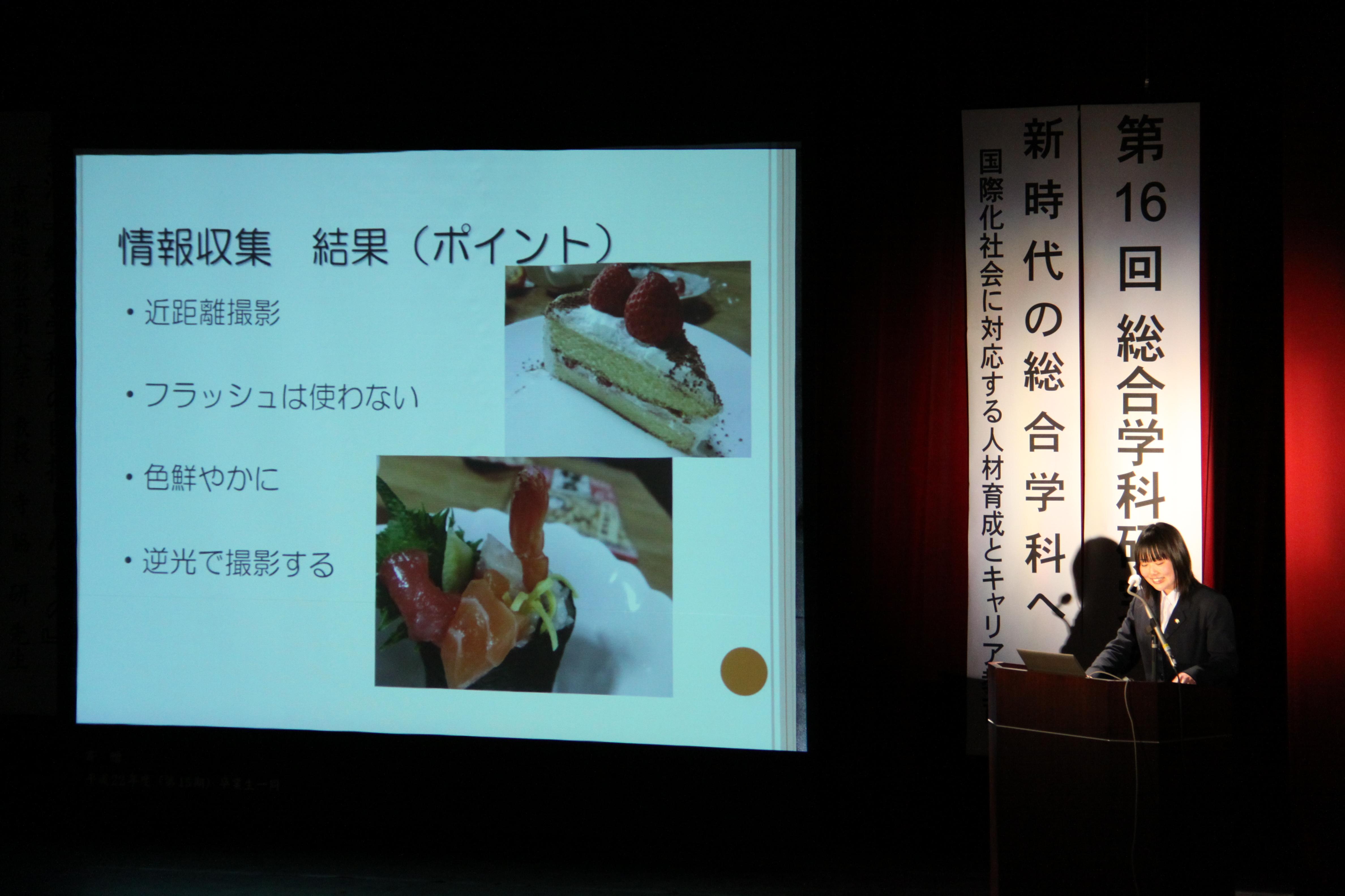 第16回総合研究大会では、「新時代の総合学科へ~国際化社会に対応する人材育成とキャリア教育」を主題として開催し、授業公開や情報交換会を実施した。また、本大会中に、当校3年生代表者による「卒業研究」の発表も行った。「卒業研究」は、1年生の「産業社会と人間」「産業理解」、2年生の「総合的な学習の時間」の学習成果を生かしながら、3年生全員が自分自身でテーマを設定して研究する科目であり、当校の特色ある教育課程の一つである。さらに、国際的な視野に立った卒業研究に取り組む生徒の中には、研究対象の国に実際に渡航し、現地調査を行っている者もいる。海外での現地調査を経て、生徒たちは国際的な視野が広がったり、文化や自然環境における日本との違いを実感したり、現地での体験や聞き取り調査などを通じて新たな課題や解決策の思わぬヒントを得たりして、研究に深みが増している。