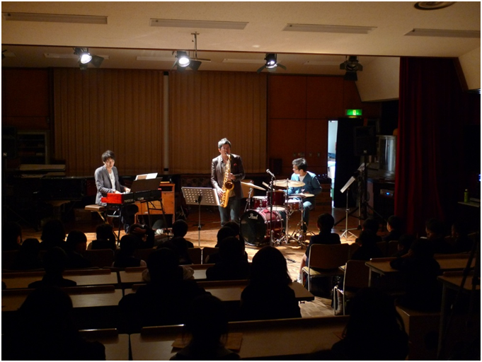 過去10回行われたこの鑑賞会のテーマは、「弦楽器の音楽」「民族音楽」「からだ☆音楽」「モーツァルトの音楽」「コラボレーションの音楽」などさまざま。11回目となる今年のテーマは「ジャズ」。一口にジャズと言ってもいろいろなジャンル、演奏形態があり、毎日違ったタイプの演奏家においでいただき演奏を聴かせていただいた。