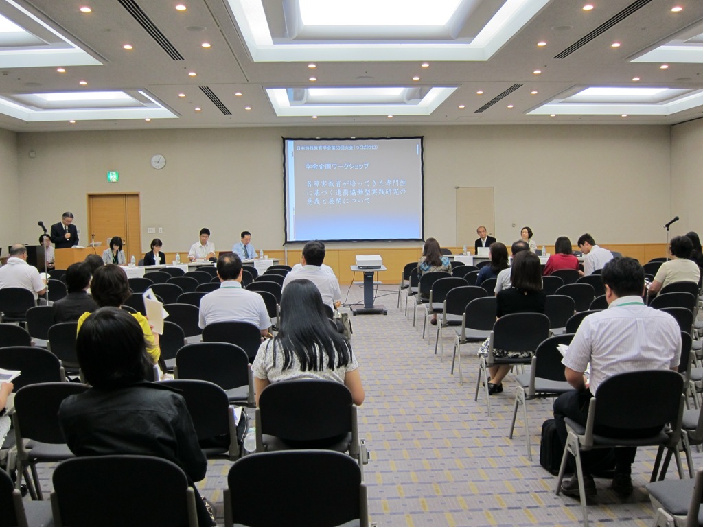 筑波大学附属特別支援学校3校と特別支援教育研究センターが、9月28日(金)~30日(日)につくば国際会議場で開催された第50回日本特殊教育学会のワークショップにおいて、「各障害教育が培ってきた専門性に基づく連携協働型実践研究の意義と展開について」のテーマで話題提供した。
