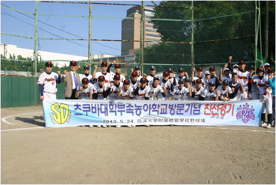 去る5月24日、筑波大学附属聴覚特別支援学校に、アジアろう野球シリーズ出場の韓国チームが来校した。