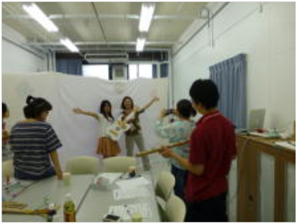 3回目の授業(7月9日実施)では、アクティビティ『影絵によるジャズエアバンド』(ジャズバンドを影絵で表現し、動画を作成するというもの)のプレ実施を行った。楽器の制作、撮影、鑑賞の後、意見交換を行った。