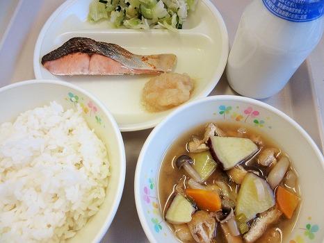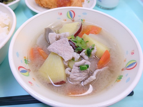 (きのこと野菜の赤みそ風味、さつまいもたっぷり汁)