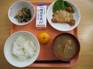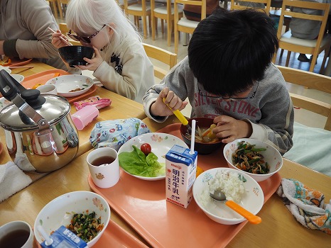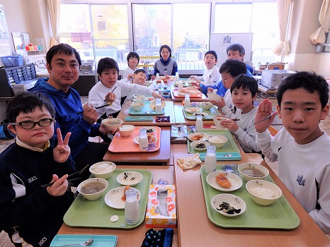 これまで各校と附属坂戸高等学校では、生徒同士の交流活動や芋ほりへの参加等は行われてきましたが、給食での連携は今回が初めてとなります。附属坂戸高等学校の生徒たちが丹精込めて育てたさつまいもを口にし、子どもたちからは、「甘い!」「おいしくてぽかぽかした。」などの感想が聞かれました。また、立派なさつまいもを見たり触ったりしながら、「持ってみたら、ずっしり重かった。」「交流した生徒さんが作ったのかな。」など、いつにもまして食べものを身近に感じ、感謝の気持ちをもちながらの給食時間となりました。