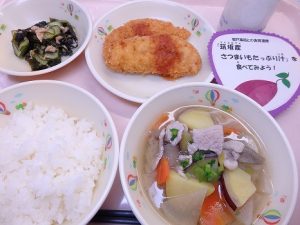 給食で連携「筑坂産 さつまいもたっぷり汁」を提供