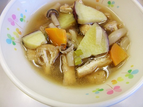 (根菜やこんにゃくを入れたみそ味のさつまいもたっぷり汁)