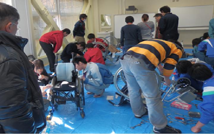 去る2月10日、筑波大学附属聴覚特別支援学校において、専攻科生徒会活動の一環として「車いす整備交流会」を開催した。