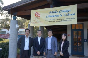 交流会では、授業研究の実践研究を行っている米国ミルズ大学附属小学校を訪れ、現地校の先生による算数の授業を参観した。また、当校教員が現地の児童と算数、音楽の授業を実施し、両国の教員が教育や授業論全般について意見交換を行った。ミルズ大学附属小学校では、アメリカで主流となっている個別指導だけでなく、日本型の集団指導の手法を取り入れた教育活動に取り組んでいる。特に、算数では日本の教科書を英訳したものを使用しており新たな学びのスタイルを模索している。授業後の協議において、日本の指導スタイルについて多くの質問があり、教師の発問や全体把握のための方法、子ども同士の学び合いの場の設定やその活かし方について有意義な議論がなされた。