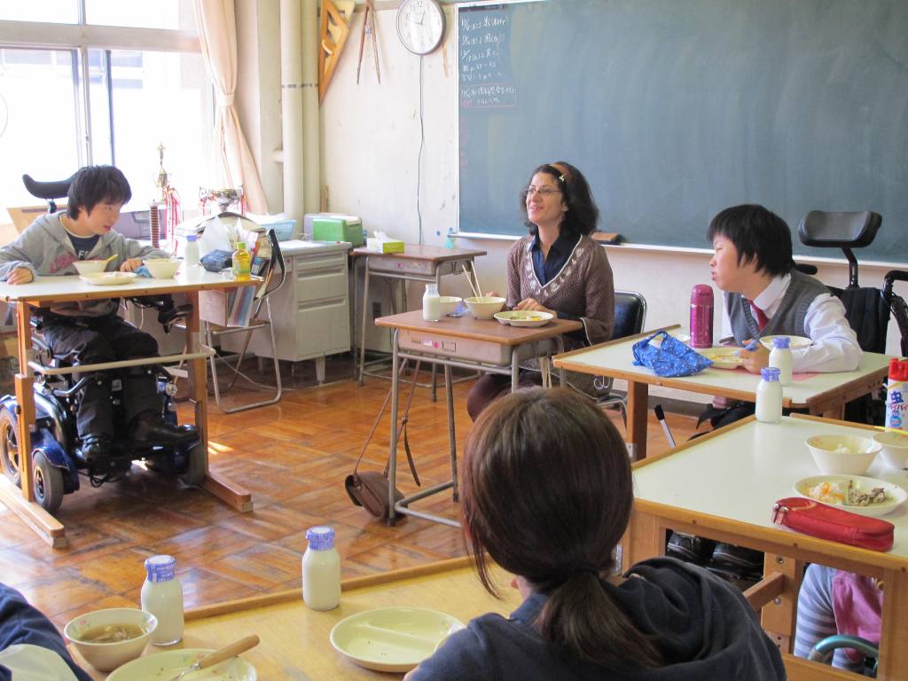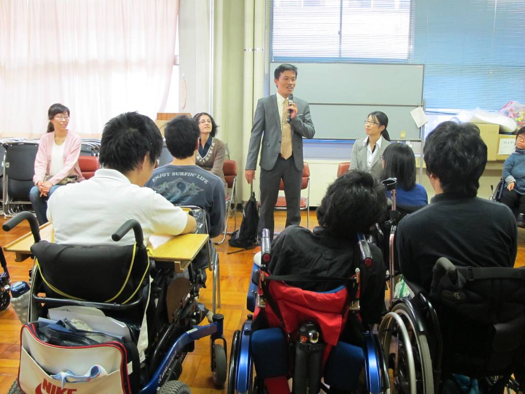 10月16日(火)、附属桐が丘特別支援学校(東京都板橋区)に、大学院教育研究科の外国人教員研修留学生4名が訪れ、高等部2・3年の合同授業に参加した。