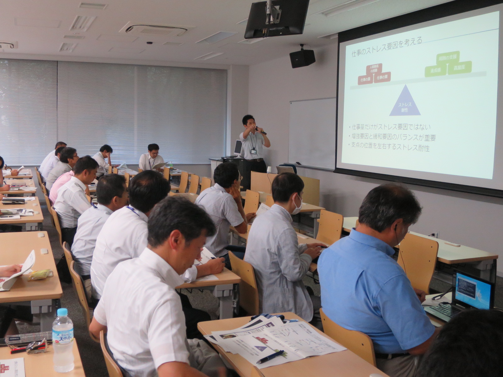 引き続き、大井助教から「メンタルヘルスとストレスマネジメント」というテーマで講演が行われ、日ごろからのストレスマネジメントが重要であり、参加者各自の「Rest」、「Recreation」、「Relax」は何かを書き出して確認を行いました。また、教師が抱える悩みの現状や危機管理に際してのストレスマネジメントとして、充電・回復時間の死守、弱音が出せ、安心して相談できる雰囲気作り、組織的対応の3つ要素について理解を深めました。