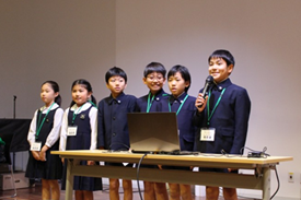第2部では「つくばふぞく交流会」に参加した児童生徒が交流行事を通して得られた経験や考えたことを発表しました。最初に生徒実行委員会が活動報告を行い、続けて同行事に参加した各校代表の児童生徒が発表を行いました。