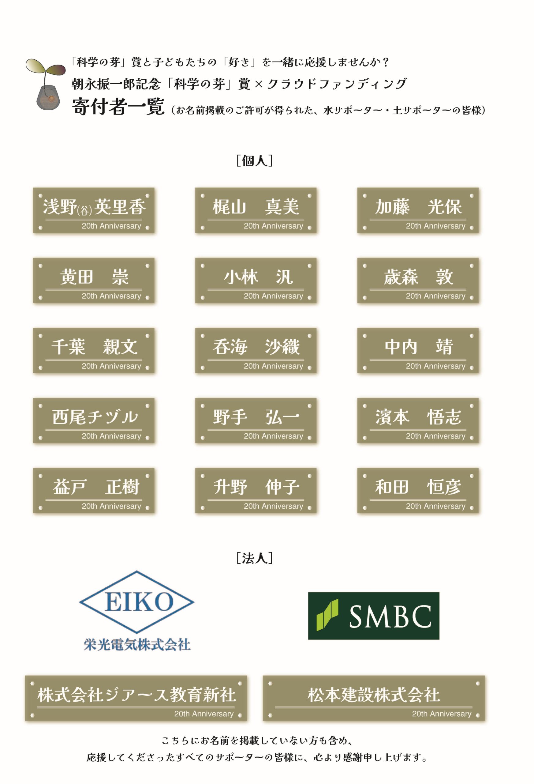 「科学の芽」賞は、未来の科学者を育てるために、これからも挑戦を続けてまいります。 引き続き、「科学の芽」賞へのご理解とご支援をよろしくお願いいたします。
