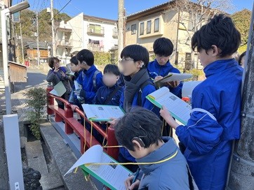 「総合的な学習の時間」の一環として、中学部1年生が校外学習を行いました。身近な地域の歴史や文化に触れ、人々の暮らしや考え方に思いを馳せながら、教科の枠を超えた学びを深める貴重な機会となりました。