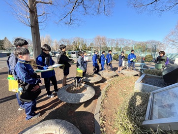 また、2月4日の午後には、地域を実際に巡る校外学習を行い、古墳時代・奈良時代・平安時代に関わる文化財や史跡を見学しました。教科書で学んだだけの時代の痕跡を間近に感じることができ、まるでタイムスリップしたかのような思いを抱いた生徒もいました。さらに、普段何気なく通っている場所に文化財や史跡が残されていることを知り、驚きとともに地域への関心を一層高める姿が見られました。