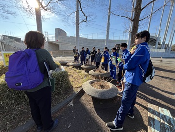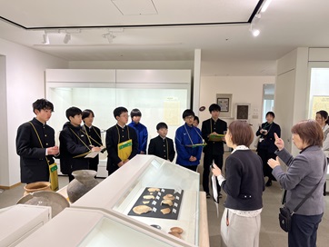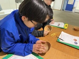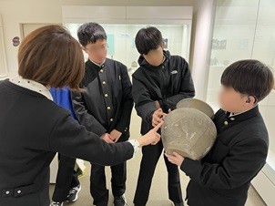 1月29日の午前中には、本校に隣接する和洋女子大学文化資料館を見学しました。学芸員の方々の分かりやすい説明を通して国府台の歴史について学ぶとともに、土器に実際に触れる体験もさせていただきました。土器の表面の模様や感触、重さを比べる中で、当時の人々の生活の様子や道具に込められた工夫について、想像を広げることができました。