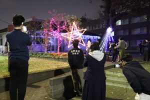 役員と寮長を中心に、全員でカウントダウンを行い、イルミネーションが一斉に灯った瞬間には歓声が上がりました。