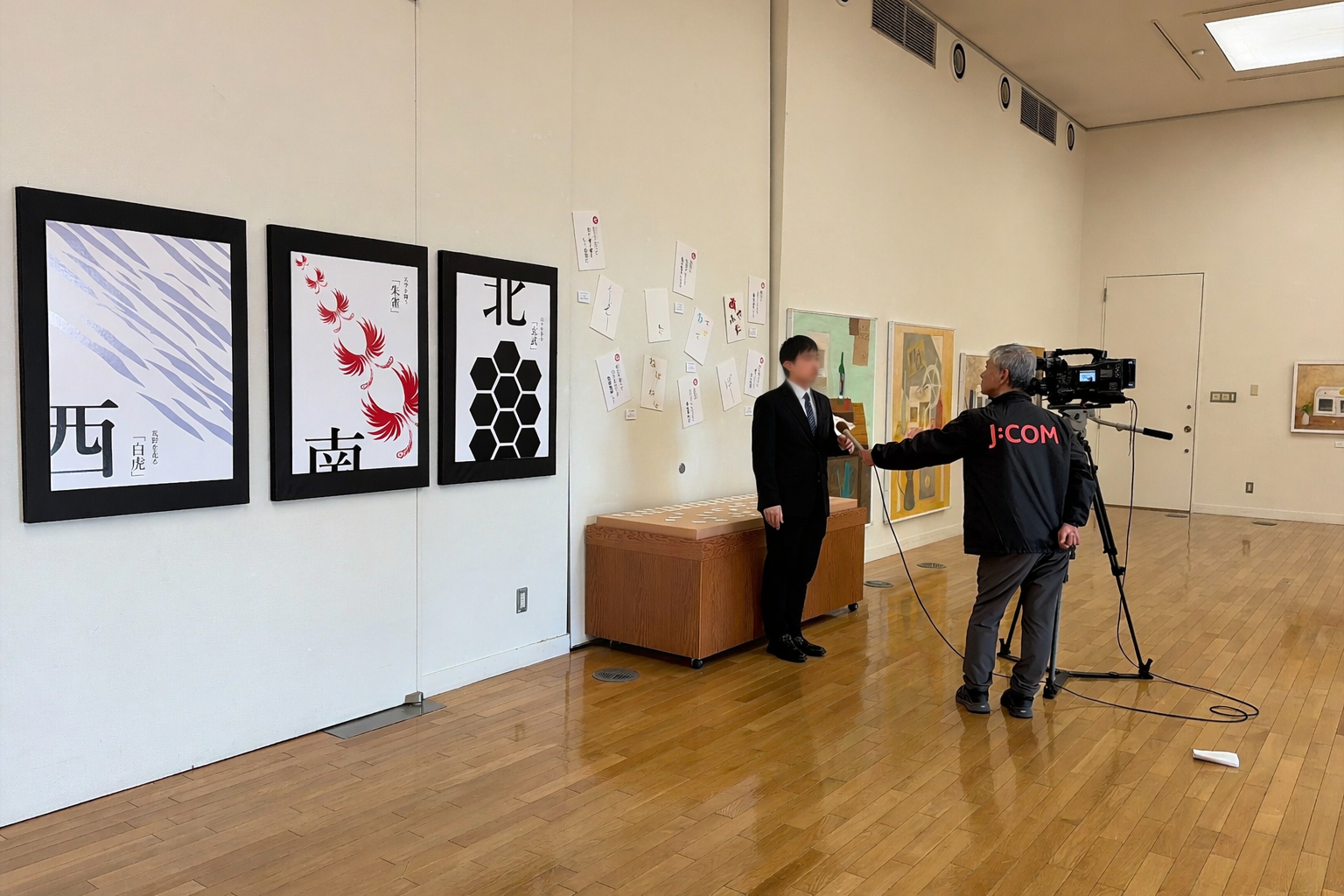 また、会期中にはケーブルテレビによる取材が行われ、生徒たちはインタビューにおいて、制作に込めた思いや、制作活動を通して得た学びについて自らの言葉で語りました。その様子は、インタビュー当日に放映されました。